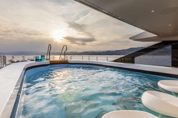 Thật khác với những bể bơi thông thường hay tắm biển, bể bơi ngoài trời trên một du thuyền hạng sang luôn là thứ mà nhiều du khách quan tâm nhiều. Bể bơi này ngoài để bơi và thư giãn thì cảm giác bơi cùng gia đình, không gian yên tĩnh với tiếng sóng vỗ rì rào và thỉnh thoảng nhâm nhi chút đồ ăn cũng tuyệt lắm chứ.