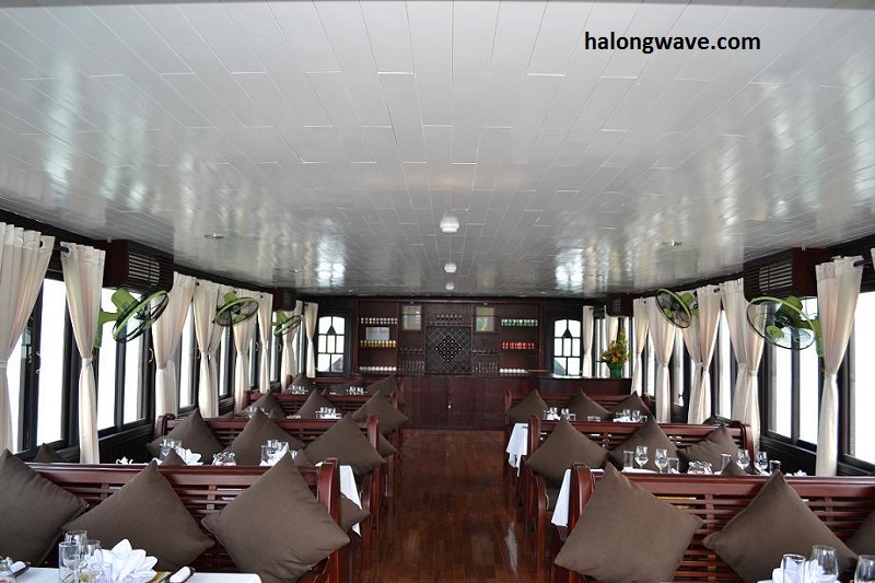 Hơn nữa, nhà hàng ngay trên tàu sẽ mang đến cho bạn những bữa ăn vô cùng tuyệt vời. Đó có thể là các món ăn hải sản đặc trưng của Hạ Long, là món đậm chất truyền thống của Việt Nam và cũng có thể là sự độc đáo của ẩm thực Phương Tây.