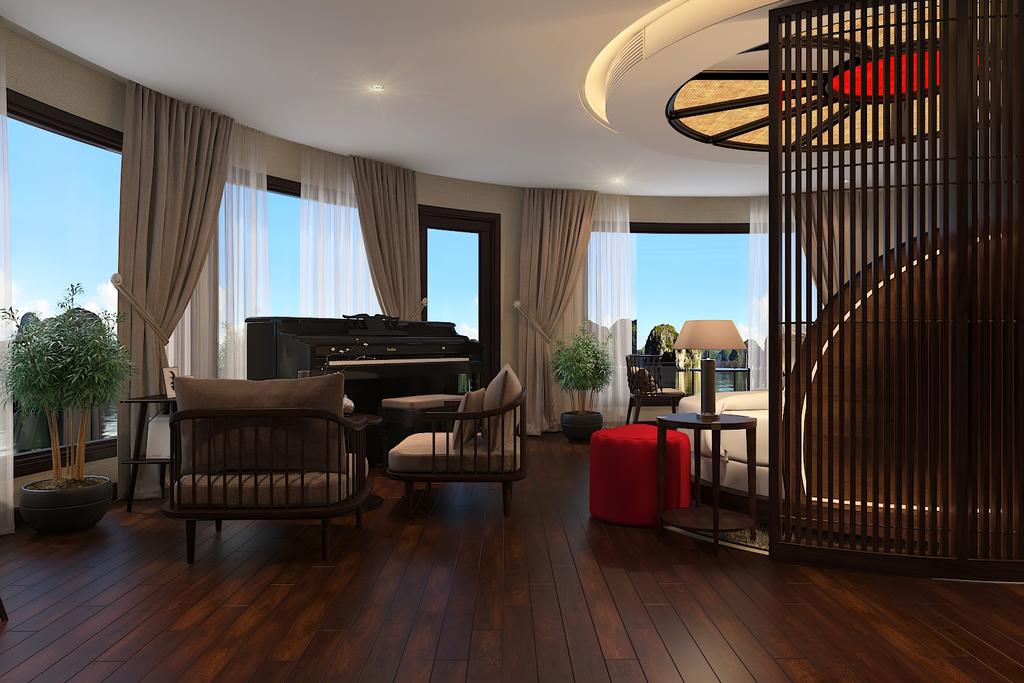 Lấy cảm hứng từ nghệ thuật bài trí nội thất truyền thống của miền Bắc Việt Nam kết hợp hài hòa cùng những đường nét đơn giản mà tinh tế của kiến trúc phương Tây, Scarlet Pearl trông giản đơn mà lại tinh tế, nhẹ nhàng nhưng sang trọng và thanh lịch đến tột cùng.