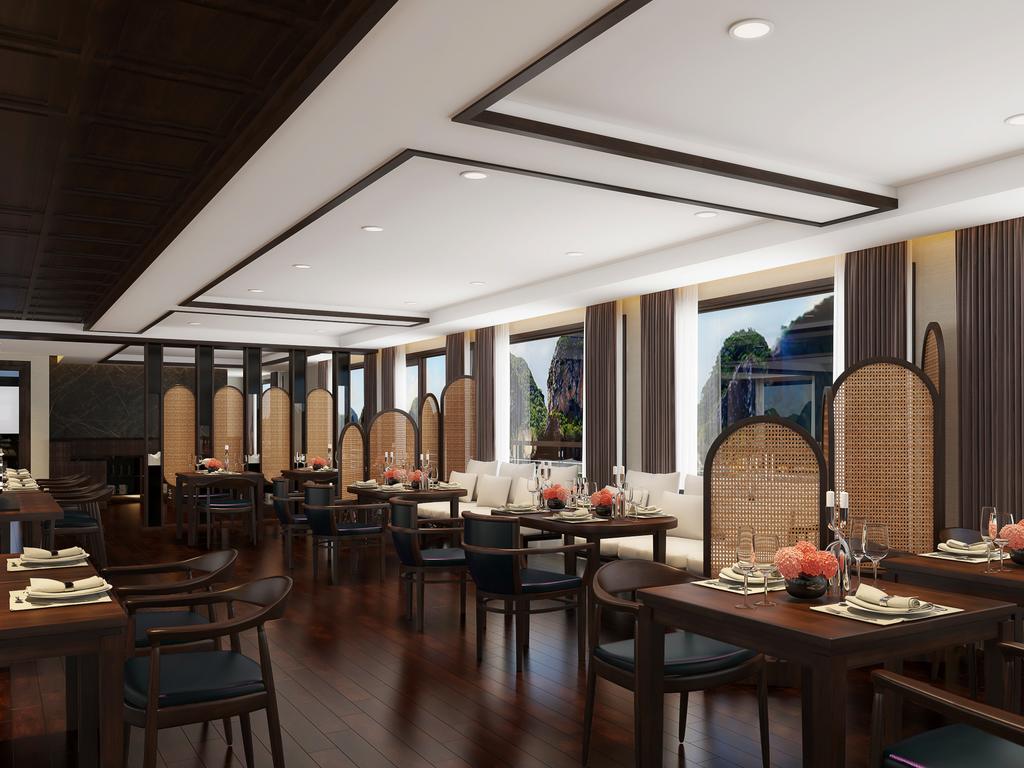 Thêm vào đó, sắc trắng tinh khôi lại làm du thuyền thêm phần dịu dàng hơn cả, tưởng như cô gái Việt mặc tà áo dài truyền thống lướt trên mặt vịnh.Điểm nhấn đặc biệt lột tả sự “phá cách” của du thuyền Scarlet Pearl chính là kiến trúc bên trong.