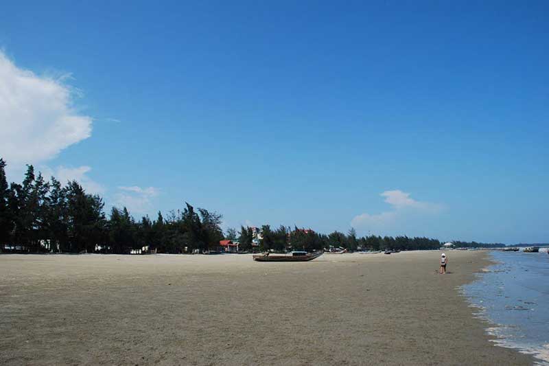Bãi biển Trà Cổ được mệnh danh là " Bãi biển trữ tình nhất Việt Nam" với bãi cát trắng mịn, phẳng và rộng hoà trong làn nước xanh biếc in bóng hàng dương xanh. 80% du khách tới thăm quan Móng Cái đều đến du lịch biển Trà Cổ để ngắm nhìn vẻ đẹp gần như vẫn còn giữ lại được không gian yên ả đậm chất nguyên sơ.