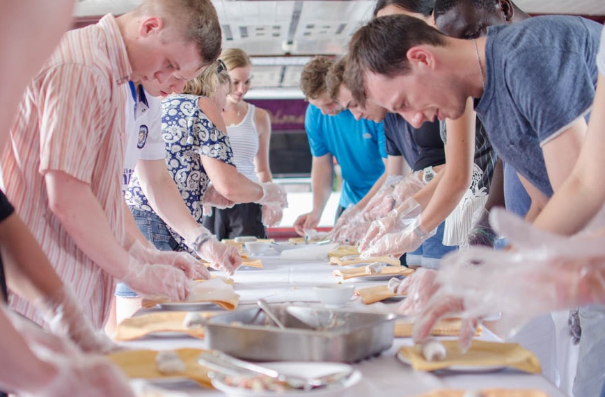Khi về tới khu vực du thuyền thả neo, bạn sẽ được tham gia lớp học nấu ăn với món nem cuốn do các đầu bếp hàng đầu hướng dẫn.