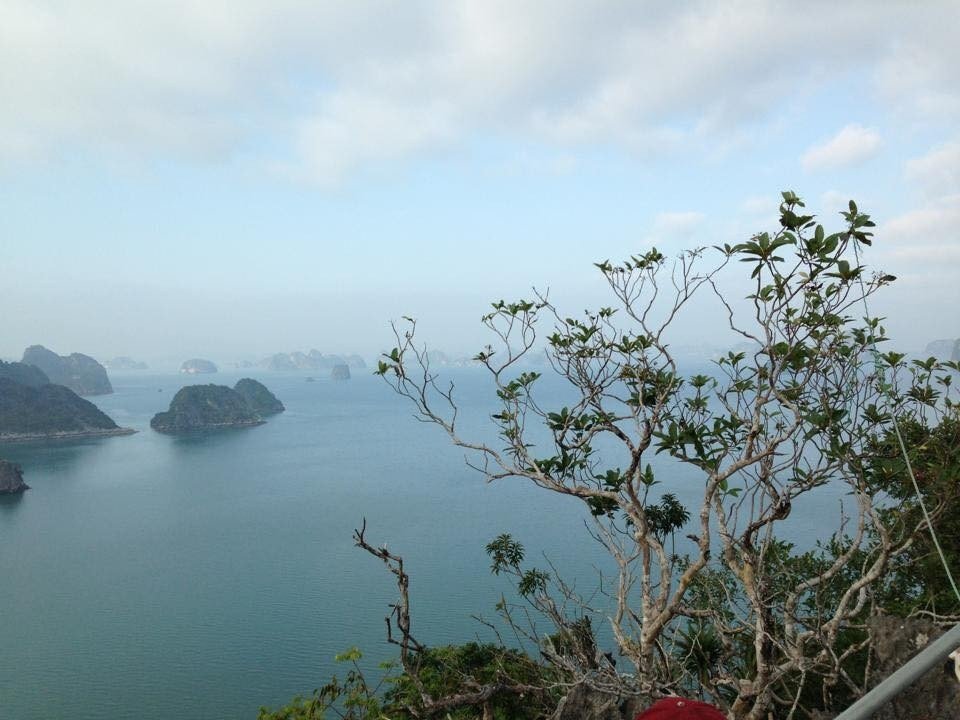 Trên đảo có một ngọn núi đá khá cao, nơi người dân nói là địa điểm đẹp nhất để ngắm hoàng hôn và toàn cảnh vịnh Bái Tử Long. Mất gần 15 phút leo lên những mỏm đá tai mèo sắc nhọn,du khách đã đứng được trên điểm cao nhất của hòn đảo. Phóng ánh mắt ra xa trong buổi chiều tà, vịnh Bái Tử Long xanh biếc hiện ra trong ánh nắng vàng dịu nhẹ. Khung cảnh mặt trời đỏ cháy từ từ lặn xuống dãy núi đủ hình dáng trước mắt quả không uổng công mướt mải mồ hôi leo núi.