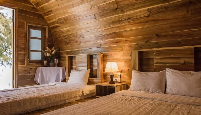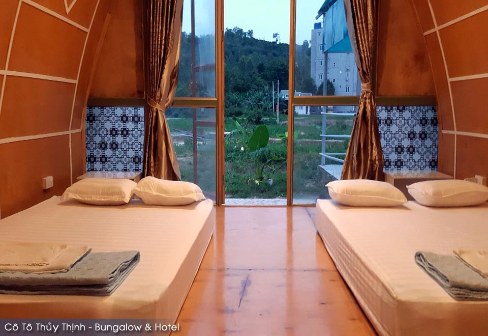 Gồm 28 nhà gỗ thiết kế dạng đặc biệt: 12 phòng được thiết kế dạng toa tàu, 14 phòng được thiết kế dạng nhà sàn và 2 phòng được thiết kế dạng lều vịt. Đặc biệt, mỗi toa tàu phòng nghỉ đều được đặt tên theo các địa danh trên đảo Cô Tô.