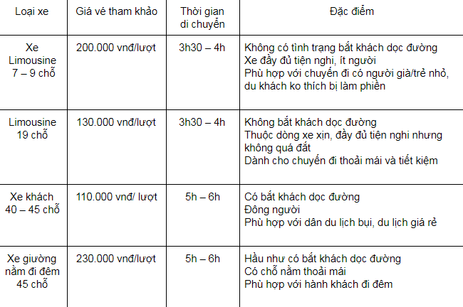 Thông tin loại xe, giá vé một số loại xe tuyến Hà Nội - Quảng Ninh: