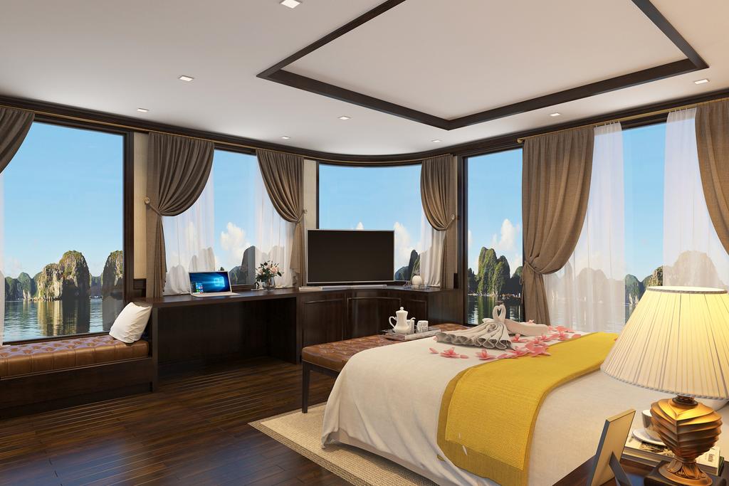 Không giống như đa số dòng du thuyền khác trên vịnh, Amour chỉ phát triển giới hạn 22 phòng nghỉ, không gian còn lại dành cho khu vực tiện ích chung.
