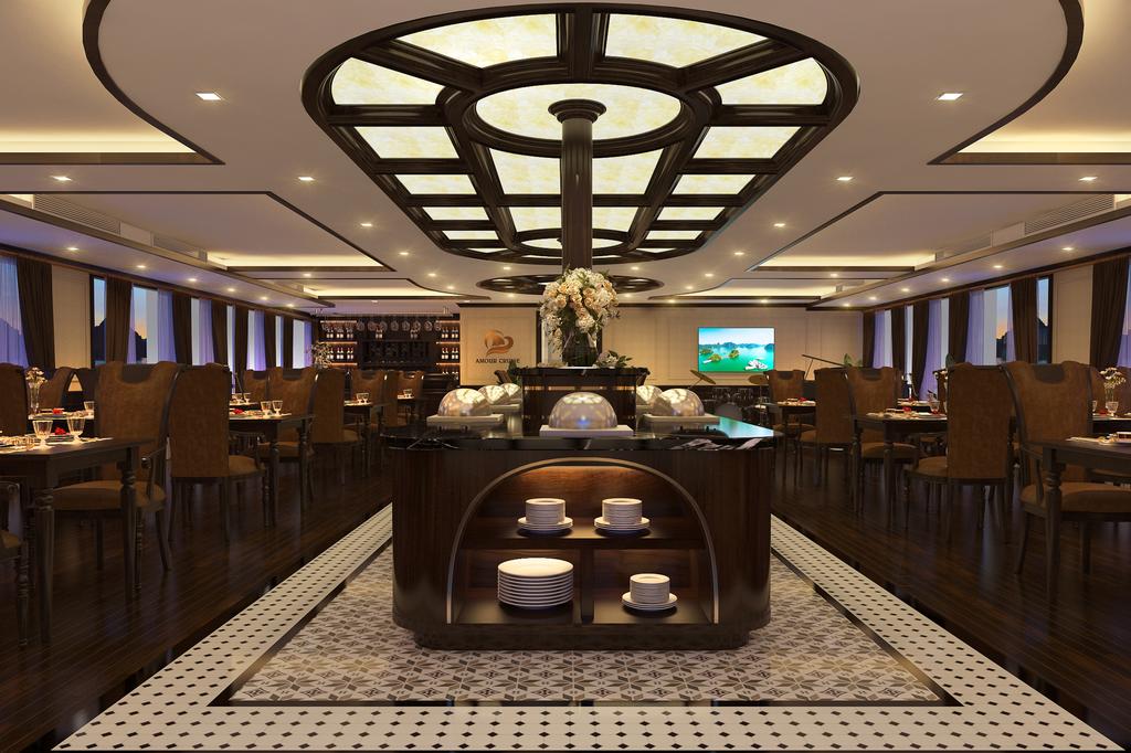Bên cạnh đó, Du thuyền Amour còn tích hợp nhiều tiện ích chất lượng ngay trong khuôn viên nhằm đáp ứng trọn vẹn mọi nhu cầu của du khách cho một chuyến đi tuyệt vời nhất. Có thể kể tới như Nhà hàng Lavender phong cách Á - u, quầy bar, phòng massage, spa, phòng yoga, bồn tắm nóng, sundeck,...