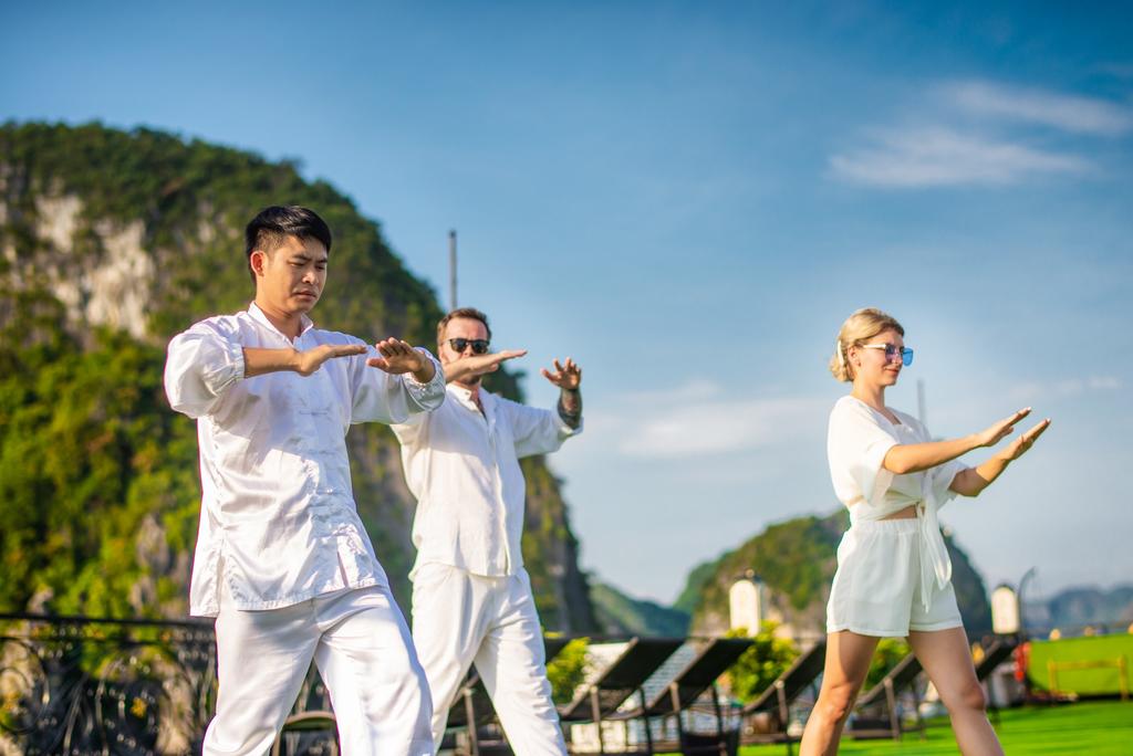 06:30: Ngắm bình minh trên vịnh Bái Tử Long, tập thái cực quyền trên boong tàu.