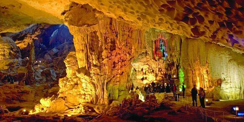Sau khi dùng điểm tâm sáng, đoàn sẽ tiếp tục di chuyển đến điểm tham quan tiếp theo - Hang Sửng Sốt. Di chuyển từ bến tàu lên khoảng 50 bậc đá dựng đứng rồi lại đi xuống chừng 10 bậc đá nữa là đến cửa hang. Là một hang rộng và đẹp bậc nhất Hạ Long, Sửng Sốt hội tụ nhiều đảo đá có hình dạng đặc sắc hiếm nơi nào có được.