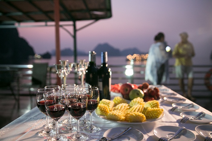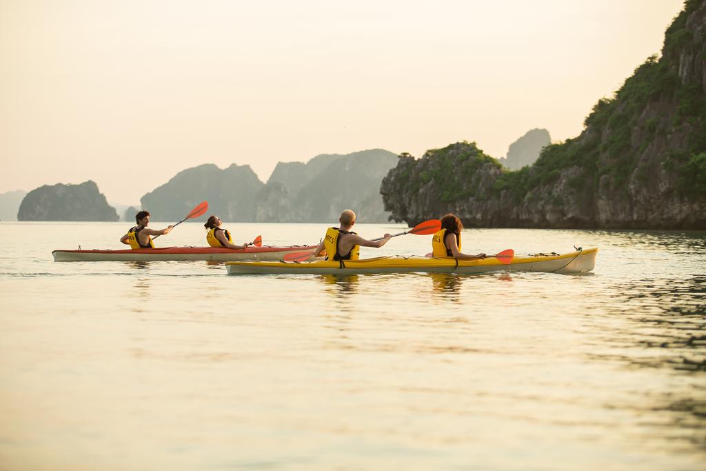 Thưởng thức một ly cocktail trên boong tàu và ngắm nhìn cảnh quan tuyệt đẹp của Hạ Long. Vào mùa hè, du khách có thể tham gia bơi lội hay chèo thuyền kayak tại đảo Đầu Trâu. Vào mùa đông, đi thuyền tre tham quan hang Luồn cũng là một trải nghiệm thú vị.