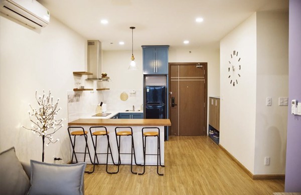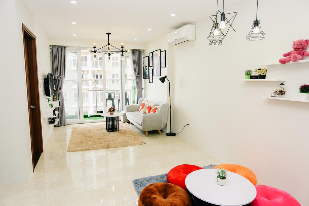 Căn hộ này được các bạn trẻ yêu thích không chỉ vì sự tiện nghi của nó mà còn vì ở đây cho ra nhiều bức ảnh check-in rất xinh xắn. Tông màu trắng là chủ đạo, kết hợp với những màu nhã nhặn như xanh da trời, nâu. Tinh tế trong decor từ những chiếc đèn hay vật dụng nhỏ nhắn trong nhà. Bạn sẽ có cảm giác thoải mái như ở nhà vậy. Được trang bị đầy đủ TV, tủ lạnh, máy giặt, bếp từ, lò nướng, lò vi sóng, nồi cơm điện, ấm siêu tốc, máy sấy tóc, dụng cụ nhà bếp...