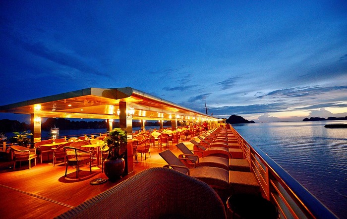 Khi màn đêm buông xuống, Vịnh Hạ Long mang đến cho bạn cảm giác yên bình và yên bình. Một sự lựa chọn hoàn hảo cho một đêm lãng mạn nên nằm trên boong tàu trong khi đắm mình vào không gian huyền ảo, ngắm nhìn những ngôi sao sáng và thư giãn với gió biển. Đã đến lúc phải rửa sạch mọi lo ngại và lo lắng về cuộc sống hàng ngày. Một chuyến tham quan đáng nhớ với hành trình qua đêm Vịnh Hạ Long chắc chắn sẽ khiến bạn tự hỏi tại sao bạn không làm điều đó sớm hơn. Đó là một cơ hội tuyệt vời để cung cấp cho bạn, người yêu của bạn và gia đình của bạn một món quà ý nghĩa với đầy đủ các trải nghiệm ngọt ngào nhất.