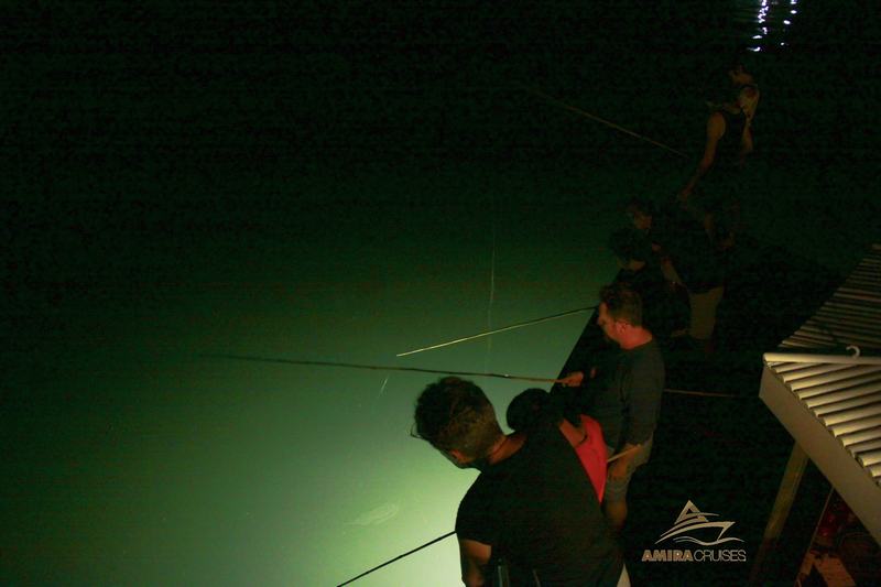 Hành trình qua đêm Vịnh Hạ Long mang đến nhiều hoạt động thú vị để làm hài lòng tất cả các loại hành khách khi ra biển vào ban đêm trong khi nằm trên boong và thưởng thức một ly rượu vang cho những người đi một mình và muốn giải tỏa căng thẳng cho các hoạt động vui như: tiệc tùng trên tàu, hát karaoke và câu mực vào ban đêm cho những người đi du lịch cùng bạn bè, người thân hoặc bạn trẻ và thích giao tiếp và kết bạn mới. Nếu bạn ghé thăm Vịnh Hạ Long vào mùa xuân, khi nào là mùa mực, bạn nên tham gia câu mực trên thuyền vào ban đêm! Sau khi bắt được rất nhiều mực, bạn có thể nhờ nhân viên trên tàu nấu nó cho bạn và bạn sẽ có các món mực tươi cho riêng mình.