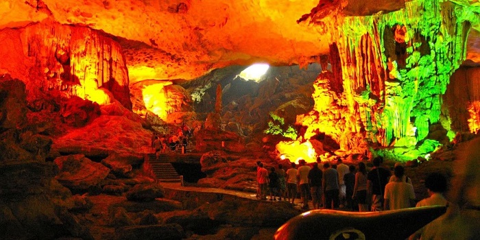 Hang Sửng Sốt trên đảo Bồ Hòn, nơi được chiếu sáng đẹp mắt bởi các màu sắc ánh sáng khác nhau, là một trong những hang động lớn nhất và ngoạn mục nhất của Di sản Thế giới được UNESCO công nhận này. Một trong những lý do quan trọng nhất tại sao bạn nên chọn du ngoạn qua đêm Vịnh Hạ Long là bạn sẽ được đưa đến thăm hang động quyến rũ này trong những giờ sớm nhất, ngay khi mở cửa. Nếu không có đám đông, bạn sẽ có nhiều thời gian để tận hưởng vẻ đẹp tuyệt đẹp của hang động đấy. Hành khách từ các chuyến du lịch khác nhau đã bắt đầu xếp hàng từ 7 giờ sáng và không khó để tưởng tượng thời gian đường đi vào buổi chiều.