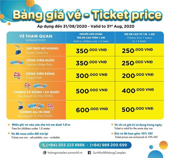 Với tổng diện tích lên tới 214ha tổ hợp vui chơi giải trí theo chủ đề Sun World Hạ Long Complex bao gồm 03 phân khu vui giải trí: Cáp treo nữ hoàng & Ngọn đồi huyền bí, công viên rồng (Dragon Park), Công viên nước (Typhoon Water Park) nơi du khách có thể thoái mái khám phá hàng trăm hoạt động vui chơi giải trí hay.