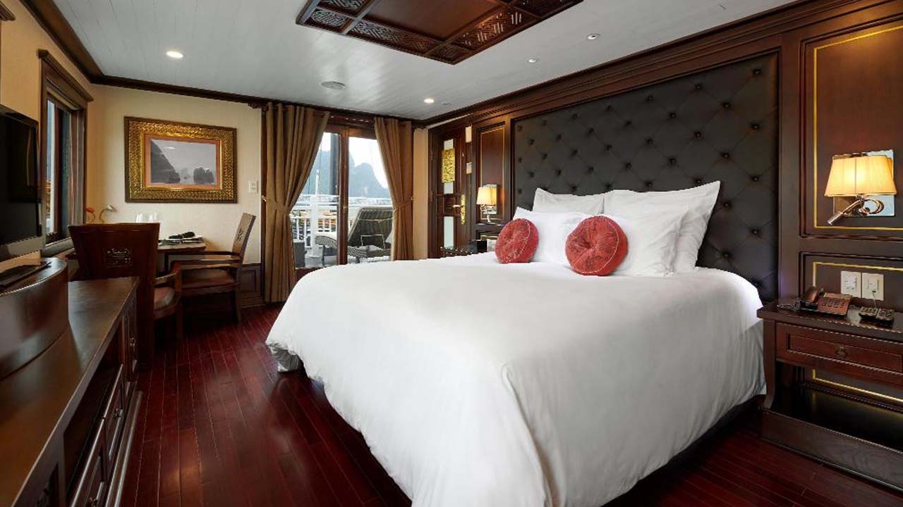 Đặc điểm: 1 giường đôi hoặc 2 giường đơn. Nội thất hoàng gia, có ban công và phòng ăn riêng