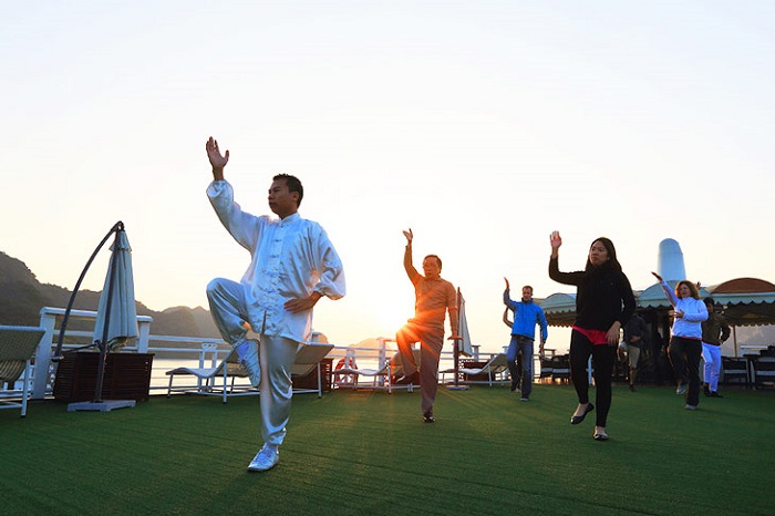 Một bài tập Taichi vào sáng sớm, một môn võ nghệ thuật kết hợp những tinh túy của hơi thở và chuyển động sẽ giúp bạn cân bằng trạng thái, thư giãn tinh thần, tràn đầy năng lượng để khởi đầu cho một ngày mới. Đặc biệt nó còn diễn ra trong khung cảnh bình minh của Vịnh nữa chứ, đừng quên cùng nhau đón những tia nắng đầu tiên ló lên khỏi mặt biển nhé.