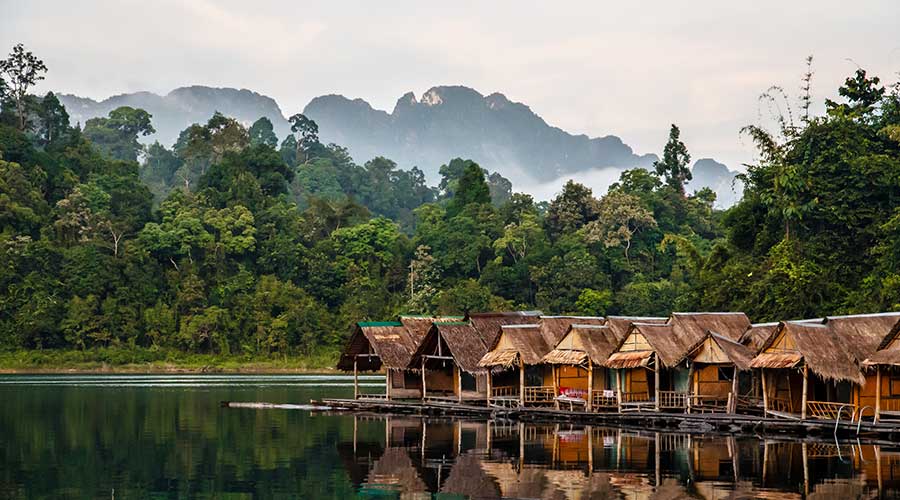 Vườn quốc gia Khao Sok được ví như một thiên đường nhỏ xinh ở nơi trần thế. Đây là ngôi nhà của những cánh rừng mưa nhiệt đới lâu đời nhất trên trái đất, của hồ nước trong vắt xanh màu ngọc bích, của thác nước ẩn sâu trong rừng, của hệ thống hang động phong phú, của những dãy đá vôi kỳ vĩ…Tất cả khiến Khao Sok trở thành điểm đến lý tưởng không thể bỏ qua ở miền Nam Thái Lan đối với những bạn yêu thích thiên nhiên. Hơn nữa, vườn quốc gia Khao Sok còn là nhà của các động vật hoang dã như voi châu Á, barking deer (một loài thuộc họ hươu nai), lợn rừng, gấu heo vòi Malayan và nhiều loài khỉ khác nhau như vượn, khỉ đuôi lợn và voọc.
