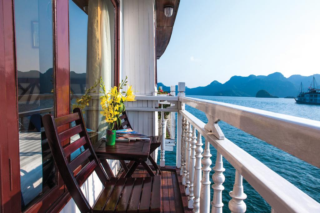 Đặc biệt, tất cả các phòng trên du thuyền đều có ban công nhỏ cùng một bộ bàn 2 ghế để du khách ngồi ngắm cảnh và nghỉ ngơi.
