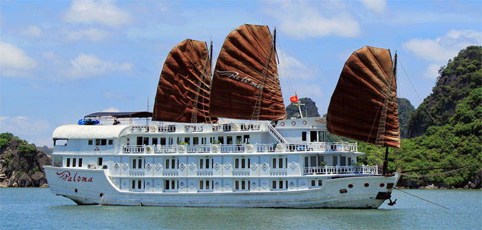 Với chất liệu gỗ tối màu và lối kiến trúc cổ điển Trung Hoa, Paloma là tàu ngủ đêm trên vịnh Hạ Long mang đến cảm giác huyền bí mà trang nhã, hấp dẫn ánh nhìn của mọi du khách.