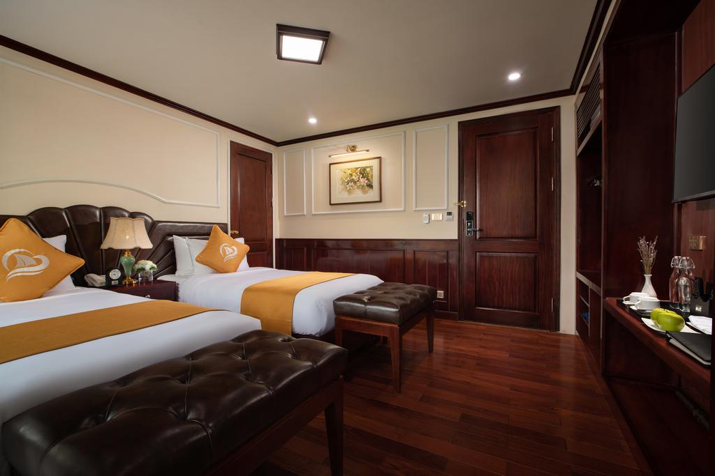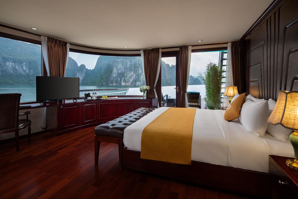 Theo đó, bạn có thể tùy chọn 3 hạng phòng tại đây với các vị trí, diện tích, không gian khác nhau là Queen Deluxe, King Deluxe, Paris Suite và Amour Suite. Tất cả các phòng đã được trang bị đầy đủ nội thất từ tivi, tủ quần áo, điều hòa cho tới bàn làm việc, thiết bị vệ sinh,.. Do đó, bạn sẽ có cảm tưởng như được thư giãn trong một phòng resort tiện nghi lại ấm cúng như ở nhà vậy! Không gian du thuyền được tích hợp rất nhiều tiện ích cao cấp, hoàn toàn đáp ứng nhu cầu nghỉ dưỡng của bạn. Có thể kể tới như nhà hàng cao cấp, phòng spa và massage, phòng gym, sundeck, lễ tân 24/24, phòng họp và hội nghị, quầy bar sang chảnh,...