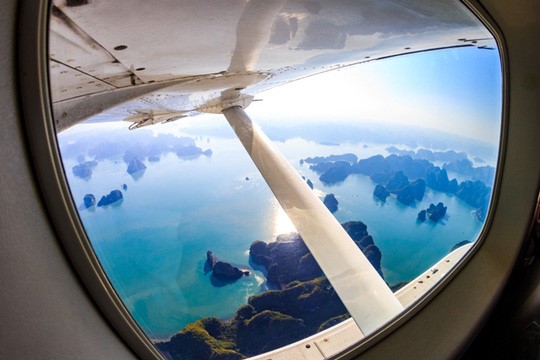 Ngắm thiên nhiên hùng vĩ của Hạ Long chắc hẳn sẽ mang đến cho bạn những ấn tượng khó quên trong đời. Thật vậy, bạn có thể tưởng tượng, hơn 2000 hòn đảo xinh đẹp lớn, nhỏ của vịnh Hạ Long bỗng chốc đều thu nhỏ vào trong tầm mắt của bạn. Khi máy bay đến gần, bạn thậm chí có thể quan sát thấy được cả thảm thực vật phủ xanh những ngọn núi đá vôi này. Tất cả những hang động vốn sừng sững, hiên ngang trước mắt bạn cũng đều trở nên nhỏ bé từ tầm cao, những du thuyền hạng sang giống như thuyền bè nối tiếp nhau thật sinh động trên bức phông nền xanh thướt tha và thơ mộng của Hạ Long.