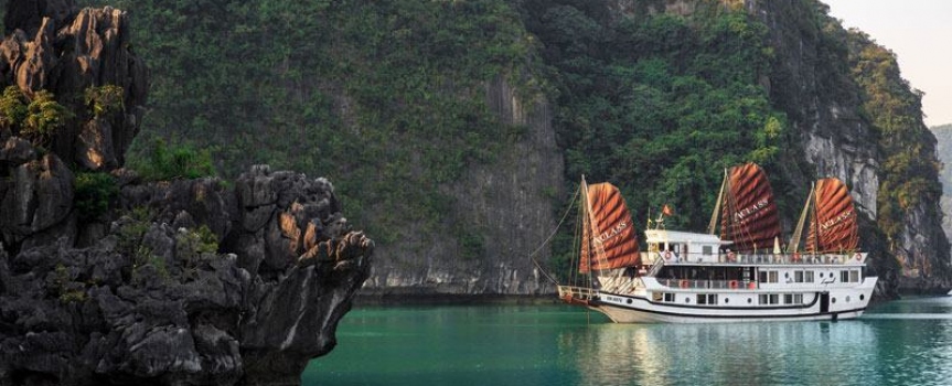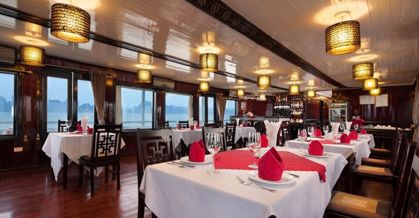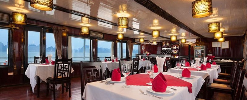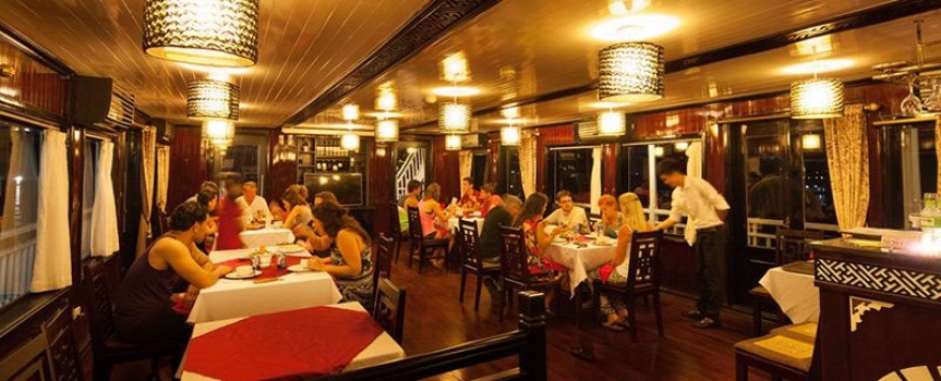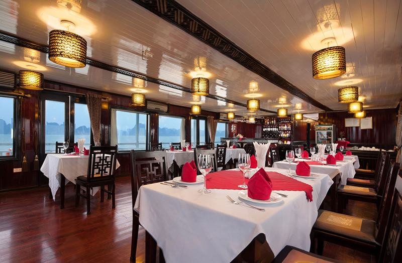 - Quý khách dùng bữa trưa tại nhà hàng trong khi du thuyền dời cảng ra vịnh