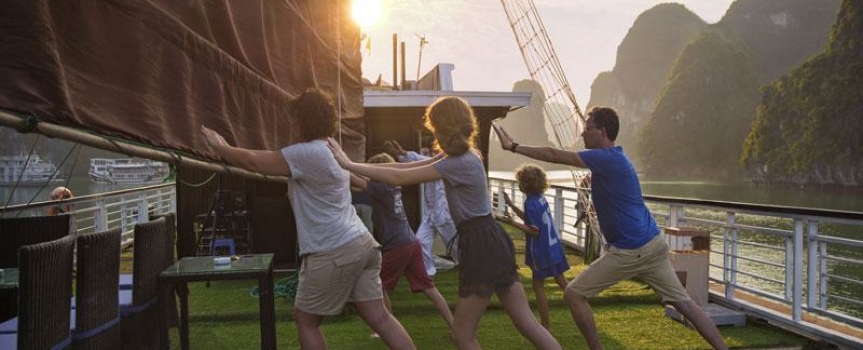 06:30: Tận hưởng khoảnh khắc đẹp nhất trong ngày trên Vịnh Hạ Long vào buối sáng với lớp học Tai Chi trên sundeck.