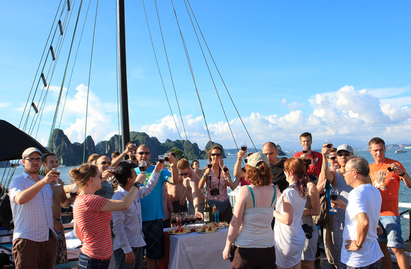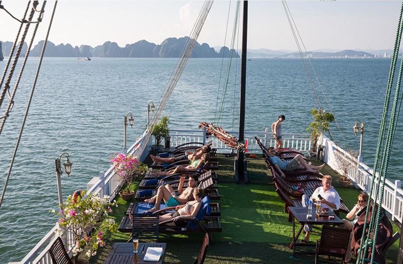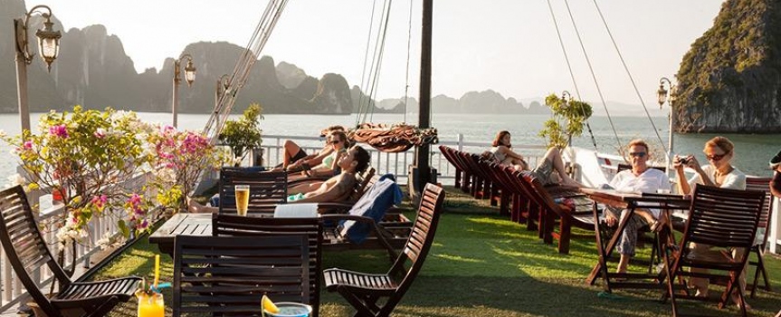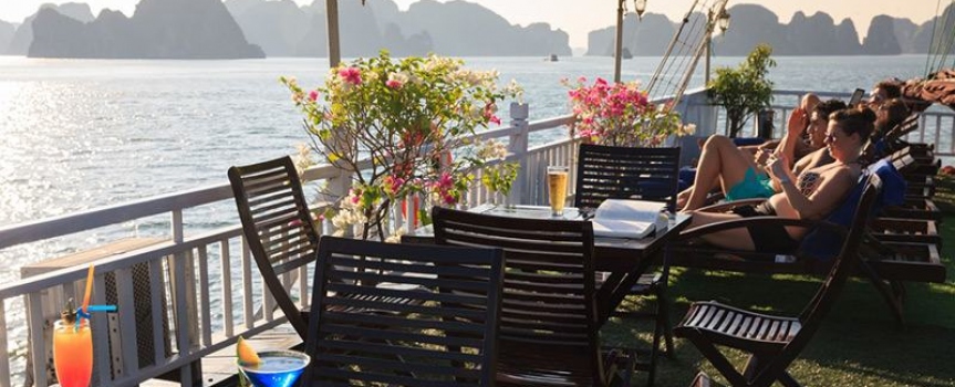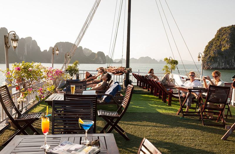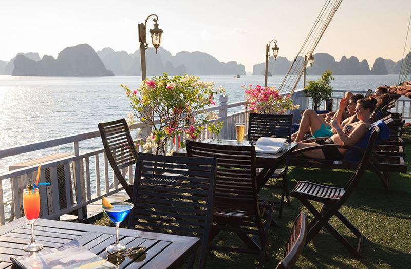 - Quý khách tham gia tiệc trà chiều trên sundeck, đây là thời gia lý tưởng để Quý khách gia lưu với các bạn đi cùng và ngắm cảnh hoàng hôn trên vịnh.