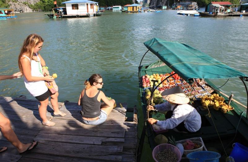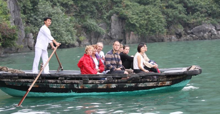 Đắm mình trong khung cảnh tráng lệ của Vịnh trong khi tàu hướng tới làng chài Cửa Vạn.
