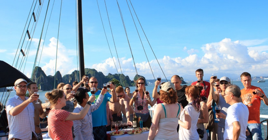 12h00 – 12h30: Quý khách lên tàu, thưởng thức đồ uống chào mừng, gặp gỡ thuyền trưởng và nhân viên trên tàu.