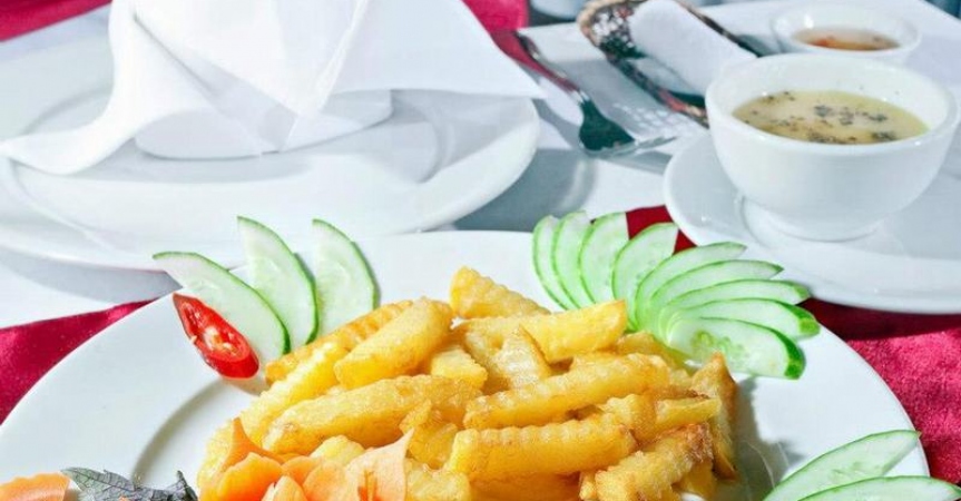 Bữa tối được phục vụ với các món ăn Việt Nam.