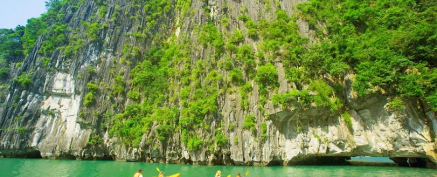 13:30 – 14:45 Tham quan khu vực Hang Trinh Nữ bằng cách chèo thuyền kayak