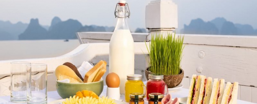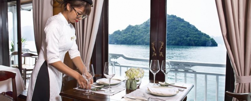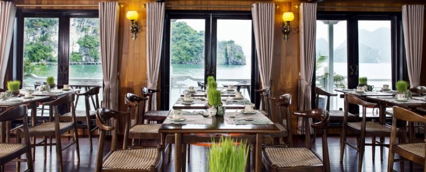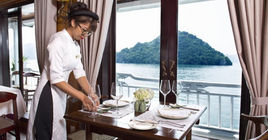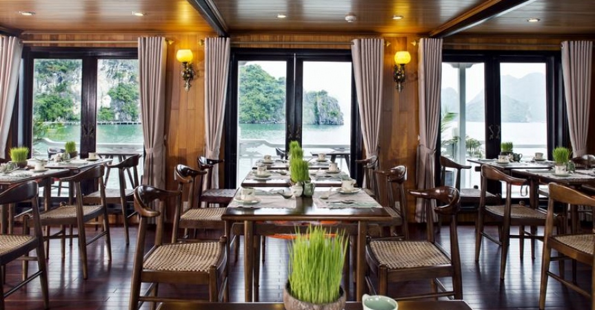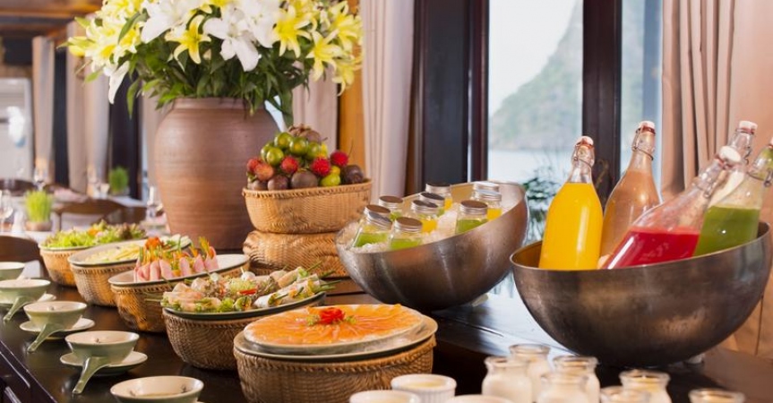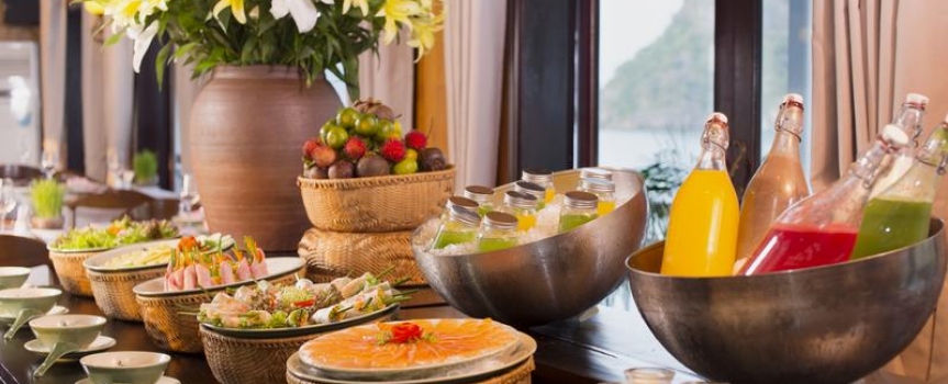 09:30 trở đi Bữa ăn đầy đủ được phục vụ khi tàu quay trở về bến.