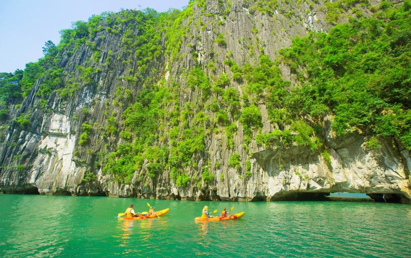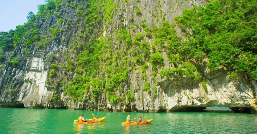 16:15 – 17:15 Thăm Hang Luồn, tham gia hoạt động kayaking hoặc ngồi thuyền tam bản (có tính phí 300,000VNĐ/ người cho dịch vụ kayaking). Quý khách nên chuẩn bị đồ bơi hoặc quần sooc cho hoạt động kayaking.