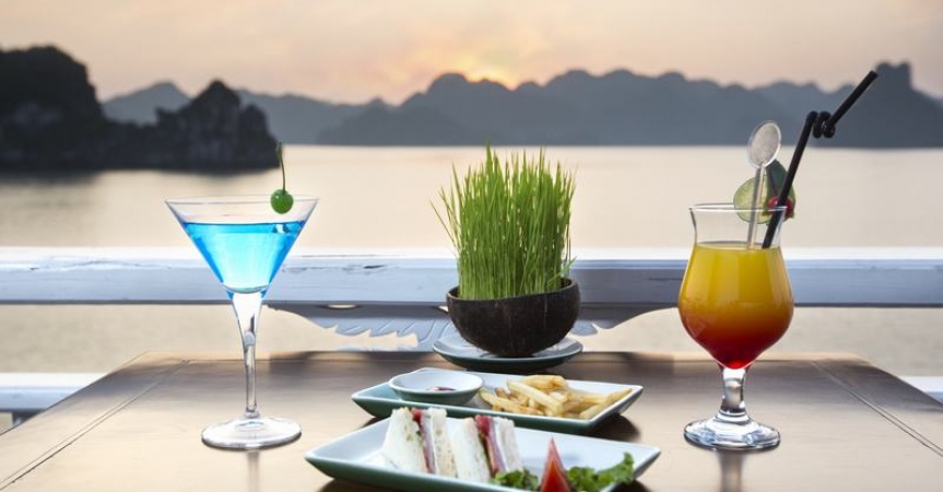 17:00 – 19:00 Chương trình khuyến mãi đồ uống (Mua 01 tặng 01) (áp dụng cho rượu vang, đồ uống pha và rót vào cốc, bia, nước ngọt và đồ uống đóng lon) 17:45 – 18:30 Biểu diễn nấu ăn tại sundeck hoặc nhà hàng (tùy vào điều kiện thời tiết)