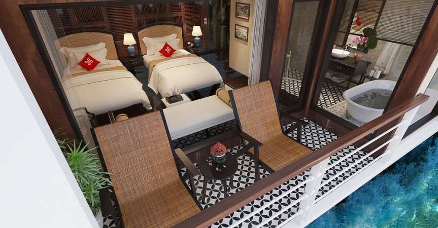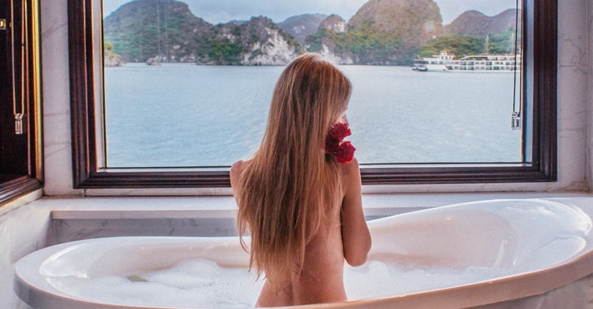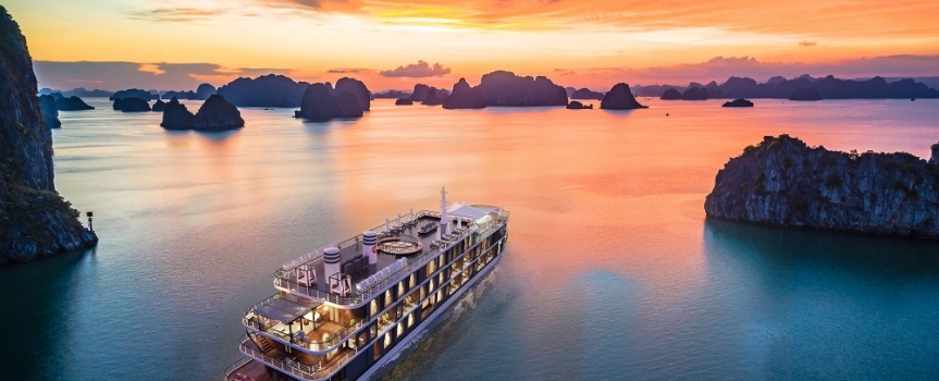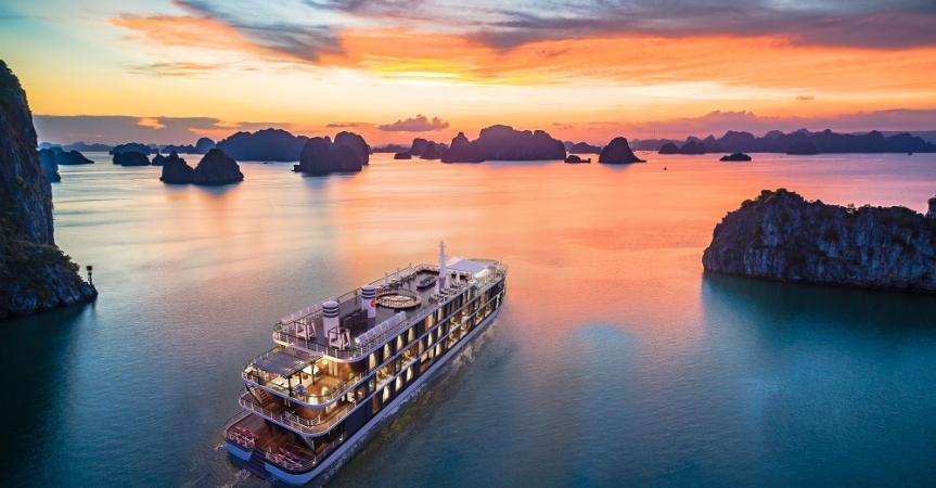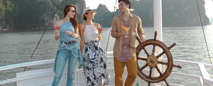 17:30 Quay trở lại tàu, du khách tự do nghỉ ngơi ở trên không gian chung của tàu hoặc trong phòng với một ly cocktail và ngắm hoàng hôn trên Vịnh Bắc Bộ. Các hoạt động khác bao gồm trà chiều hoặc nếm thử rượu hay cũng có thể tham gia lớp học nấu món ăn Việt Nam.