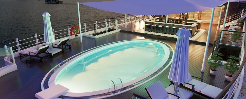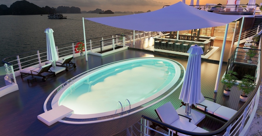 16:00 – 19:00 Thư giãn ở hồ bơi trên tàu với một ly cocktail và thưởng ngoạn cảnh hoàng hôn trên vịnh.