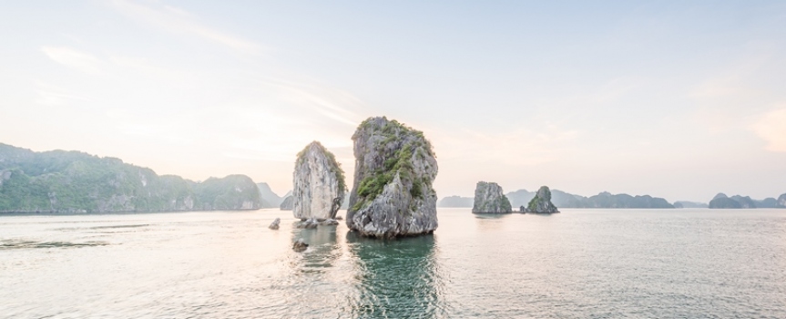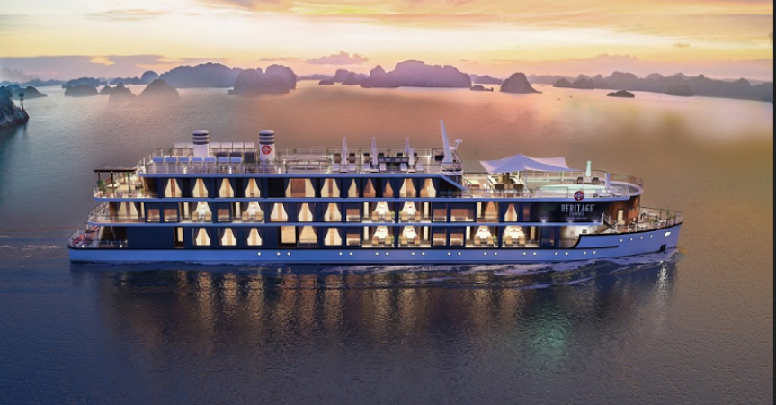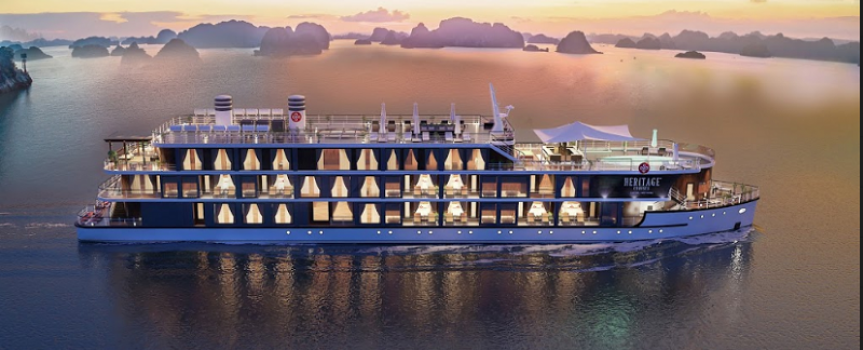 12:00 Quý khách sẽ lên xuồng cao tốc để di chuyển ra Du thuyền Heritage Cruises thăm quan quần đảo Cát Bà.
