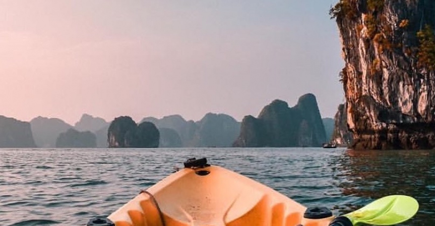 13:30 Ở Vịnh Bái Tử Long bạn có thể đi thuyền nan, chèo Kayak hay bơi ở khu vực hồ Ba Hầm nơi có vách đá dốc đứng (nếu thời tiết thuận lợi).