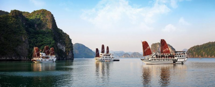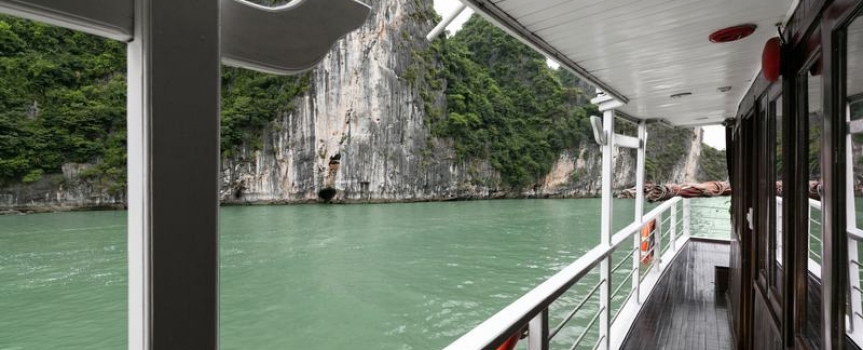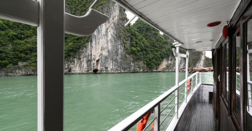- Quý khách dùng bữa trưa tại nhà hàng trong khi du thuyền rời cảng ra vịnh