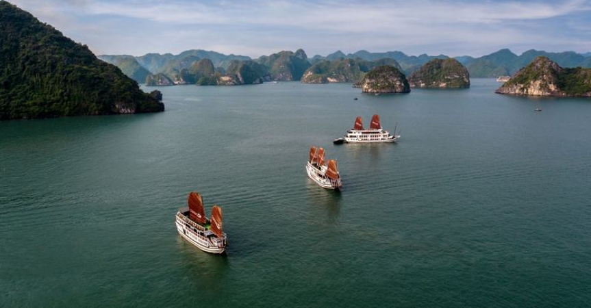 Đắm mình trong khung cảnh tráng lệ của Vịnh trong khi tàu hướng tới làng chài Cửa Vạn.