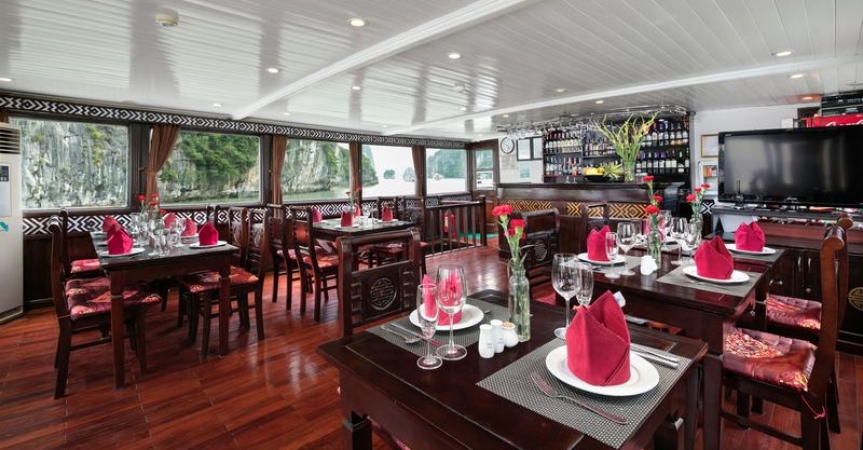 Carina Cruise với lợi thế là một du thuyền nhỏ nên nhà hàng và quầy bar được thiết kế có không gian rất ấm cúng như tại gia đình. Mỗi một vị khách đều là một thành viên trong đại gia đình Carina, luôn được chăm sóc và phục vụ tận tình nhất