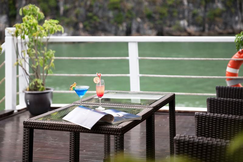 Sundeck trên tầng thượng của Carina thực sự là một nơi quá tuyệt vời cho việc thư giãn, nghỉ dưỡng và ngắm cảnh sắc Hạ Long. Nơi du khách có thể tựa mình vào những băng ghế dài hay thư giãn với hàng trăm loại đồ uống khác nhau được phục vụ bởi đội ngũ nhân viên tận tình nhất của Carina.
