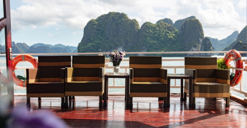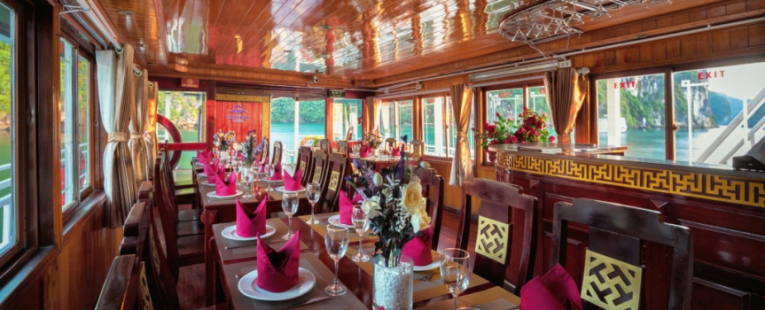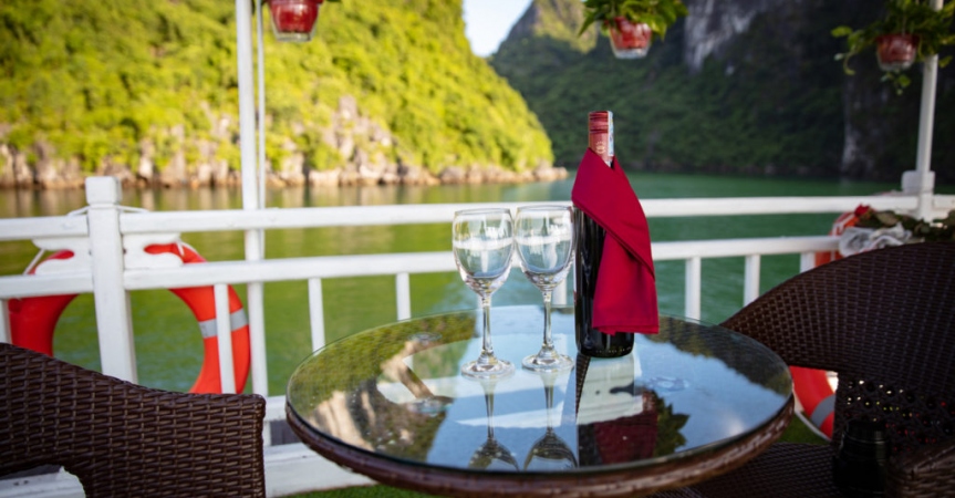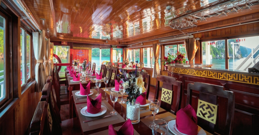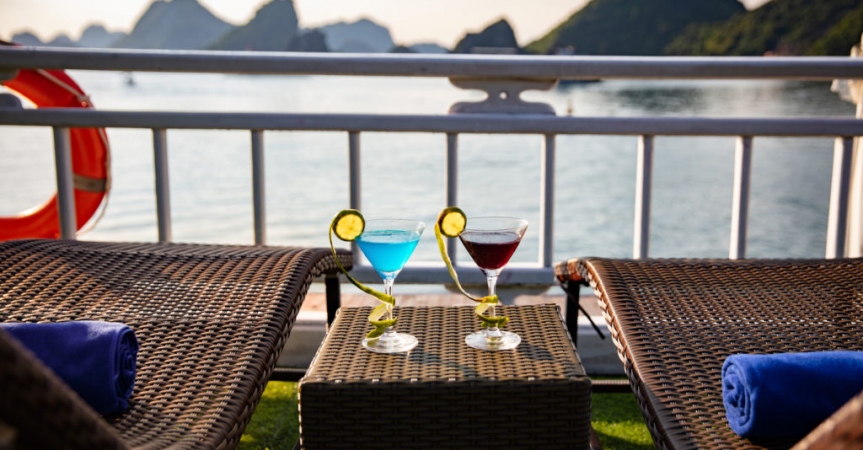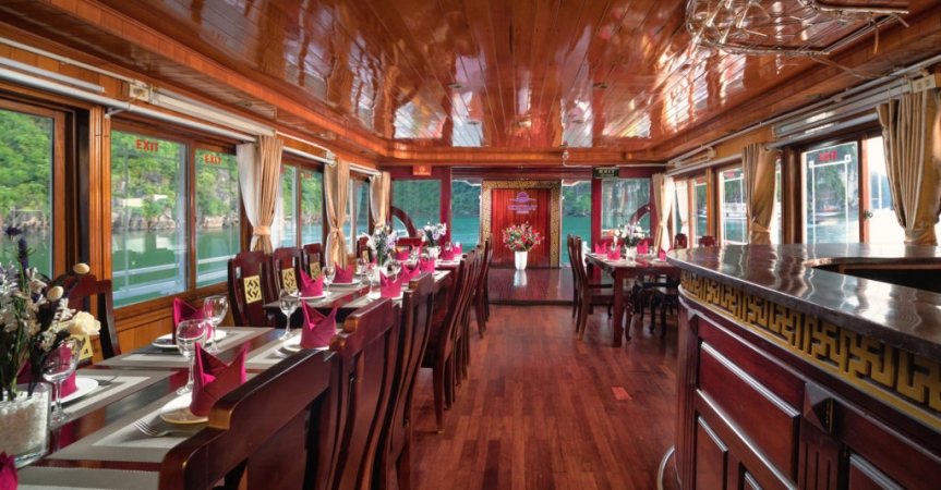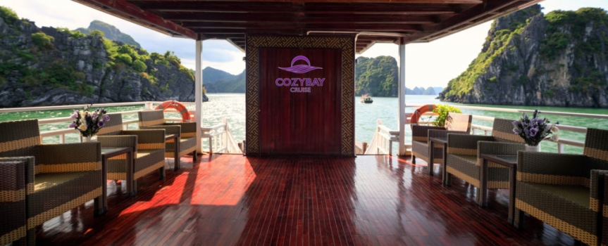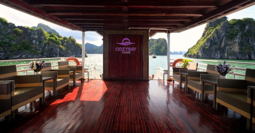 9:30: Du khách quay trở lại du thuyền Cozy Bay, trả phòng, thanh toán dịch vụ đồ uống đã sử dụng trên tàu ( nếu có).