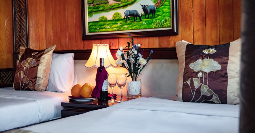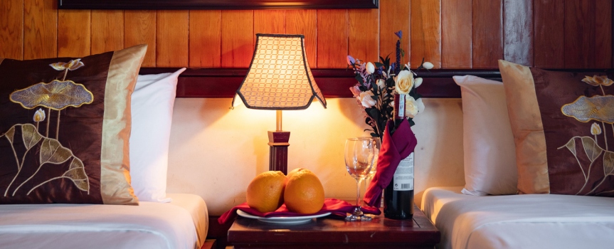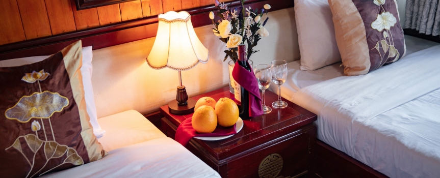 Giờ bật điều hoà :13:00 Pm-14:00 Pm (trong khi khách lên tàu + check-in phòng – Áp dụng vào những ngày nhiệt độ trên 38oC)