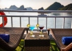 6:00: Du khách thức giấc, lên sundeck ngắm nhìn bình mình trên Vịnh Hạ Long7:00: Du khách thưởng thức bữa sáng trên du thuyền Cozy Bay.