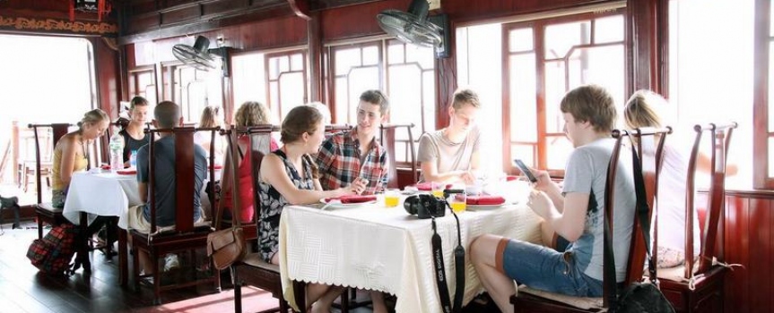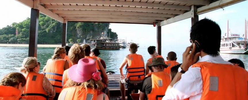 08:00 Quý khách trả phòng khách sạn, lên xe ra bến để về tàu. Quý khách nghỉ ngơi, chụp cảnh vịnh trong khi tàu di chuyển về bến Bãi Cháy.