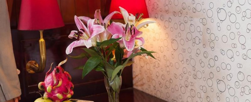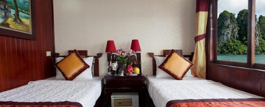 - Đến bến tàu Bãi Cháy, thuyền đưa quý khách lên tàu Hạ Long. Nhân viên tàu đón đoàn bằng ly nước mát, quý khách nhận phòng cabin của mình trên tàu.
