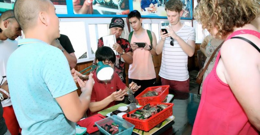 Ngày hôm nay đoàn sẽ đi thăm Cơ sở sản xuất ngọc trai tại vịnh Hạ Long, tận mắt chứng kiến quy trình nuôi cấy, chăm sóc trai lấy ngọc. Sau chuyến tham quan quý khách chuyển sang tàu ngày, đến với vịnh Lan Hạ với cảnh vật hoang sơ và thăm đảo khỉ nơi sinh sống tự nhiên của hàng trăm loài khỉ quý hiếm.